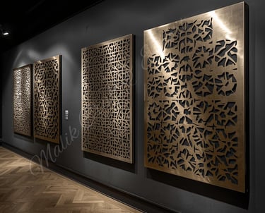 Handcrafted metal panels with intricate designs that add elegance, depth, and a modern touch to any wall.